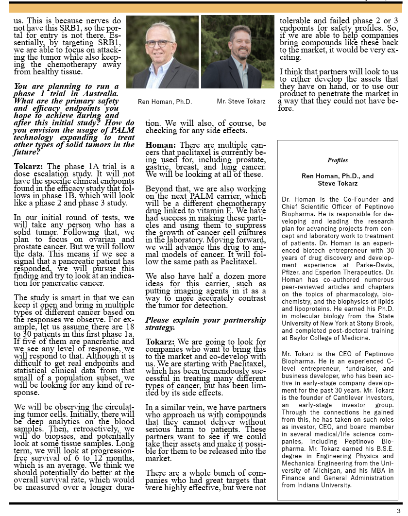 Ren Homan, Ph.D., Co-Founder of Peptinovo Biopharma and Steve Tokarz, CEO of Peptinovo Biopharma